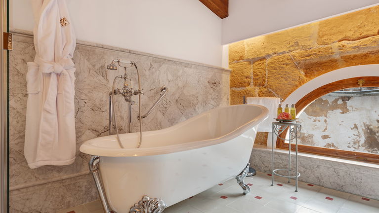 Very spacious and stately rooms where the luminosity is unique in the old town of Palma. The majestic bathroom with bathtub enhances the luxury and elegance for a romantic and unforgettable stay.