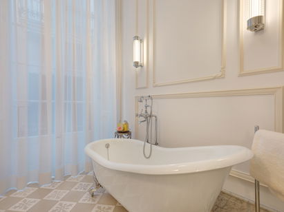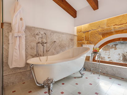 Very spacious and stately rooms where the luminosity is unique in the old town of Palma. The majestic bathroom with bathtub enhances the luxury and elegance for a romantic and unforgettable stay.